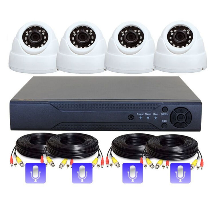 Готовый комплект HD видеонаблюдения для быстрой установки в составе 4-х AHD камер (внутренних с микрофонами) разрешением 2Мр (1920х1080), AHD видеорегистратора, проводов, блоков питания.