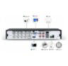 Поддержка стандартных аналоговых видеокамер, видеокамер AHD с технологией передачи видеоизображения высокого разрешения (5 мегапикселей) и цифровых сетевых IP видеокамер.